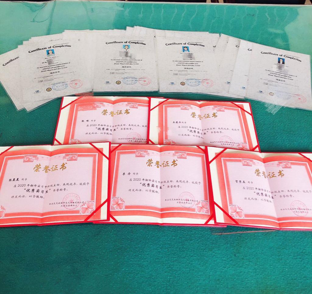 2020年5月25日至6月12日,公司2020届翻译专业共35位员工圆满完成了西安艾克森翻译文化传播有限公司为公司翻译专业应届毕业生组织的线上实习实训工作。在此次实习实训中,公司与西安艾克森公司建立了校企深度合作,艾克森公司资深讲师团为公司学子量身打造了最适合、最接地气的实训课程。实训课程教学内容设计科学、教学模式新颖、考核模式严谨。在为期半个多月的实训中,艾克森公司为公司员工带来语言服务行业最新资讯、翻译工作的基本流程、计算机辅助翻译工具(Trados)的操作及使用、翻译实践分主题讲解(包括旅游类、证件类、翻译质检类、工程类、时政新闻类、法律合同类和电力类)、翻译流程中的质检、查询检索、译前处理,以及MTI考研和CATTI资格证考试的介绍及分享。员工在实习过程中深受启发,相互学习不断地挖掘自身潜力,对未来的翻译道路更有信心。同学们的语言素养、信息素养、人文素养在实习期间得到了明显提高。艾克森讲师团的资深培训师对公司员工评价很高,认为公司员工在实习过程中积极与培训师互动,在实习的所有环节中表现出积极配合的优良品质,善于取长补短、注重团队协作、能够快速接受新的事物。在最后的结业典礼上,公司刘艳锋副经理,王晓艺老师与艾克森公司总经理刘杰先生一起见证了员工们这段时间的收获和成长。参加实习的每位同学获得了艾克森公司颁发的实习结业证书,艾克森国际翻译创始人刘杰总经理根据员工实习时的上课及作业表现,推选出五位同学为“优秀实习生”,并为她们准备了奖状及礼品。