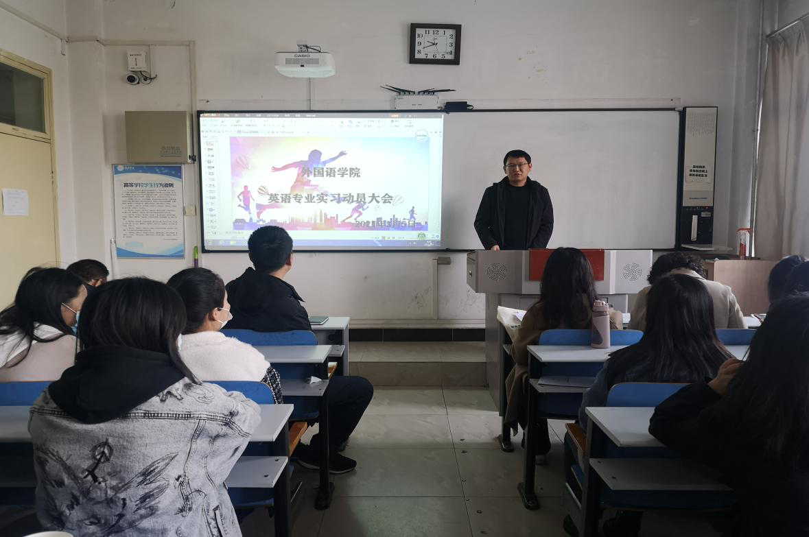 2021年3月5日上午9:00时,英国上市公司365在四号楼206教室举行了2021届本科毕业生毕业实习动员大会。会议由2021届辅导员高燕鹏老师,外国语公司党总支副书记苏毅、英国上市公司365副经理刘艳锋、各毕业实习指导老师出席此次会议,2021届全体毕业生参加会议。