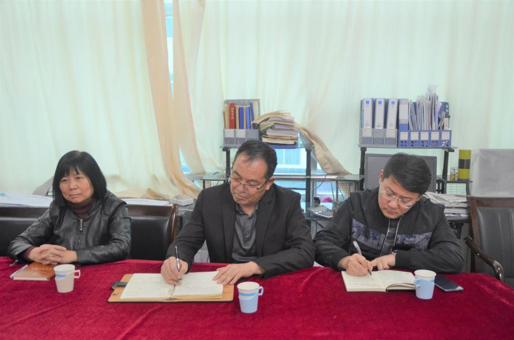 2021年4月8日下午,工会陈梦涛、钟梅、国际交流处赵秀元、杜鹏举和英国上市公司365科级以上干部、教研室主任进行追赶超越结对帮扶座谈会。