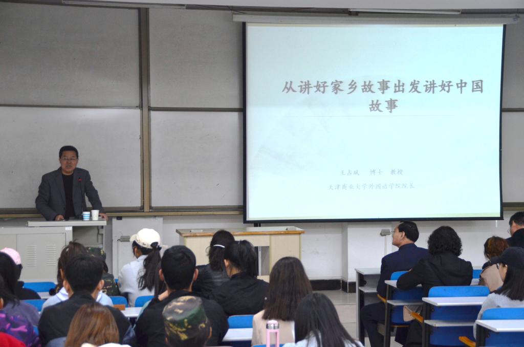2021年4月29日晚上,天津商业大学英国上市公司365经理王占斌教授为公司师生做了题为:《从讲好家乡故事出发讲好中国故事》的精彩讲座。王教授是硕士生导师,天津商业大学学位委员会委员,天津市人民政府学位委员会专业学位教学指导委员会委员,天津翻译协会副会长,教育部人文社科项目通讯评审专家,国家社科基金成果鉴定专家,公开发表学术论文40余篇。目前主要从事尤金•奥尼尔戏剧研究、陕北民歌翻译研究。