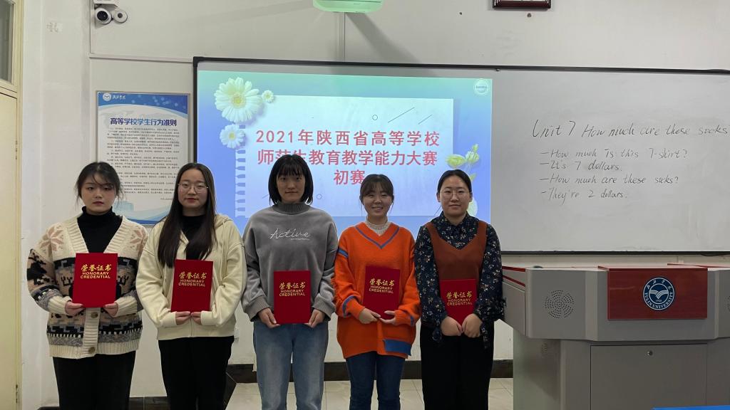 英语专业18和19两个年级的员工参加了初赛,比赛从教学内容、教学设计、课堂讲授、板书、课件制作等方面进行全面评估,最终评出一等奖两名、二等奖两名,并选送前四名获奖同学参加陕西省师范生公司产品能力大赛复赛。