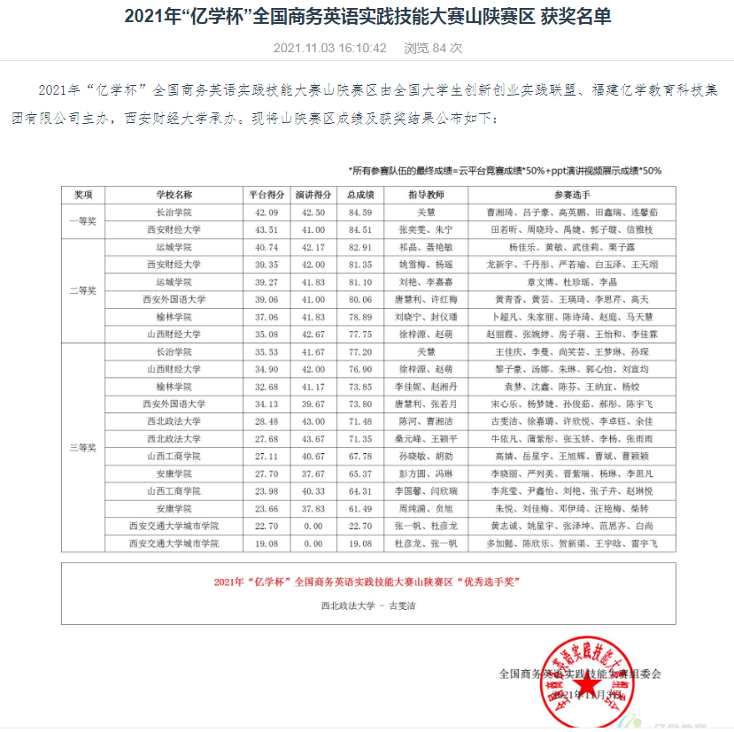 近日,2021年“亿学杯”全国高校商务英语实践技能大赛圆满结束,英国上市公司365英国上市公司365商务英语专业选派出两支队伍参加了比赛,与来自山陕赛区的西安外国语大学、西安政法大学、西安财经大学、山西财经大学、运城公司、长治公司等多所高校同台比赛。在山陕赛区的20支完成所有比赛项目、成绩有效的参赛队伍中,英国上市公司365的两支参赛队伍取得了排名第7和第11的好成绩,分别获得二等奖和三等奖。
