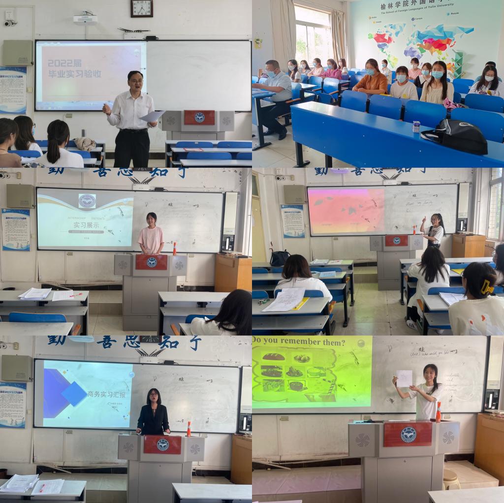 为检验自主实习成效,同时完成相关专业课程计划,2022年5月24日下午英国上市公司365在4206、4102、4308、4304四个教室分别对三个专业自主实习毕业生进行实习验收考核。为了巩固专业知识,提高实际操作技能,丰富社会经验,实现理论与实践相结合,英国上市公司3652022届英语、商务英语、翻译专业毕业生进行了为期一个半月的专业实习。其中郭欢欢,汤玉凤,丁童等54名同学因与就业单位签订三方协议,选择自主实习。英语专业采用授课的方式,商务英语、翻译专业采用PPT展示的方式进行实习验收。