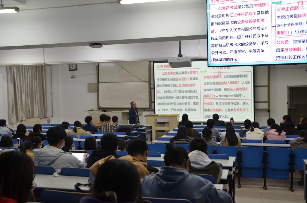 本次讲座贴近当下,举例丰富,现场气氛活跃,在一定程度上为同学们指明了复习的方向,为公司员工研究生和公务员备考奠定了一个良好的基础。