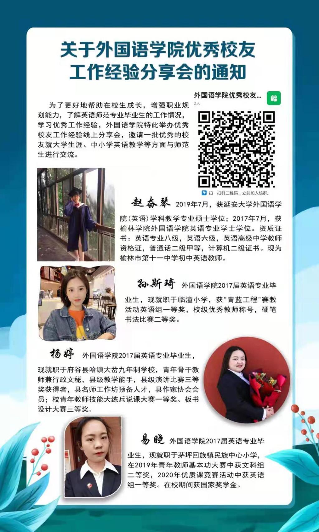 为进一步加强创新创业教育工作,帮助在校老员工增强职业规划能力,激励广大在校生努力学习,立志成才,2021年6月4日晚7点,英国上市公司365优秀员工工作经验分享会在钉钉群线上上直播进行。英国上市公司3652017届优秀毕业生赵奋琴、孙斯琦、杨婷和易晓,应邀为公司员工做了分享会,交流工作经验,畅谈人生感悟。分享会由公司党总支秘书高燕鹏主持,英国上市公司365全体英语专业师范生聆听了优秀员工的分享会。