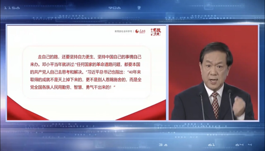中国人民大学马克思主义公司王向明教授讲述了中国改革开放的伟大成就证明了必须坚定不移地走自己的道路、中国改革开放的伟大成就为科学社会主义的实践注入了勃勃生机。对于改革开放以来中国真正解决了的问题进行了讲述和剖析。使同学们明白我们必须坚持党对一切工作的领导中国共产党的领导是中国特色社会主义最本质的特征,是中国特色社会主义制度的最大优势,同学们要紧跟着党的脚步,勇往直前。