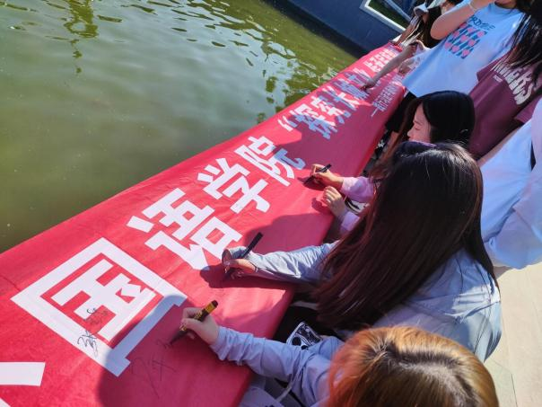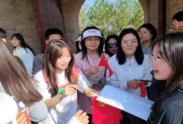 最后,大家再次回到起点,郝倩老师为毕业生党员颁发毕业礼物,为“攀爬长城,主题教育知识竞答”获胜小组颁发奖品,同学们在横幅上签字表明自己要不断努力,坚定文化自信,传承民族精神的决心。
