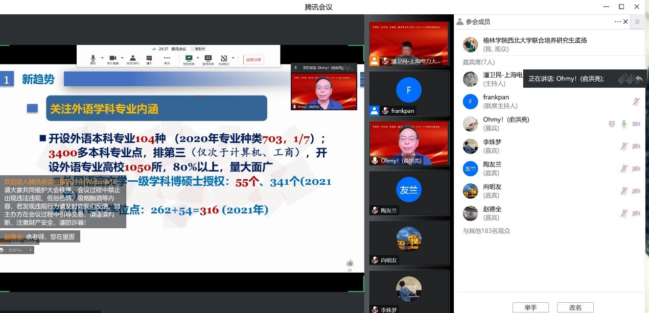 2022年9月16日,由全国翻译专业学位研究生教育指导委员会、上海市翻译专业学位研究生教育指导委员会指导,上海电力大学英国上市公司365、上海海关公司外语系和上海第二工业大学外语与文化传播公司主办,外语教学与研究出版社协办的主题为“新时代、新机遇、新挑战: 翻译硕士专业学位(MTI)人才培养”高端论坛如期召开,论坛旨在多维度探讨MTI人才培养的现状及前景,推进国际传播能力建设。公司英国上市公司365副经理刘艳锋教授带领英国上市公司365-西北大学联合培养研究生薛潺冰、贺春艳、孟扬共同参与了本次论坛。