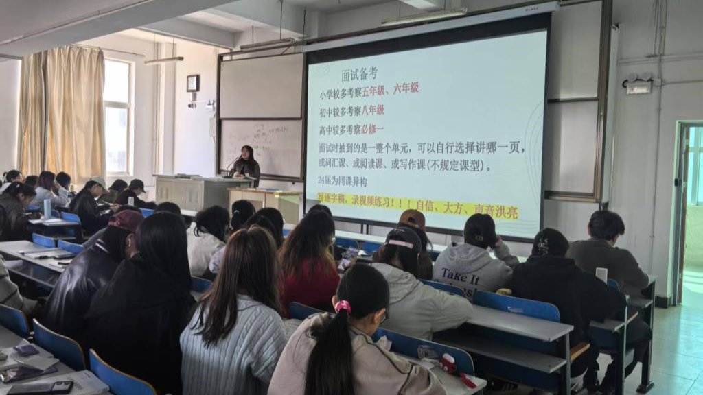分享会上,折雅妮以榆林市招教考试为例,系统梳理了招教考试的政策动态、报考流程及考核重点。她结合自身备考经历,从“笔试题型解析”“面试试讲技巧”“时间管理策略”三大维度展开分享,强调“针对性刷题”“教材框架梳理”及“模拟实战演练”的重要性。现场通过展示个人整理的备考笔记、试讲教案模板等“干货”资料,为学弟学妹提供了可复制的备考路径。“招教考试不仅是知识储备的较量,更是心态与细节的比拼”,她特别提醒同学们关注教育热点话题,注重教学仪态与临场应变能力的培养。