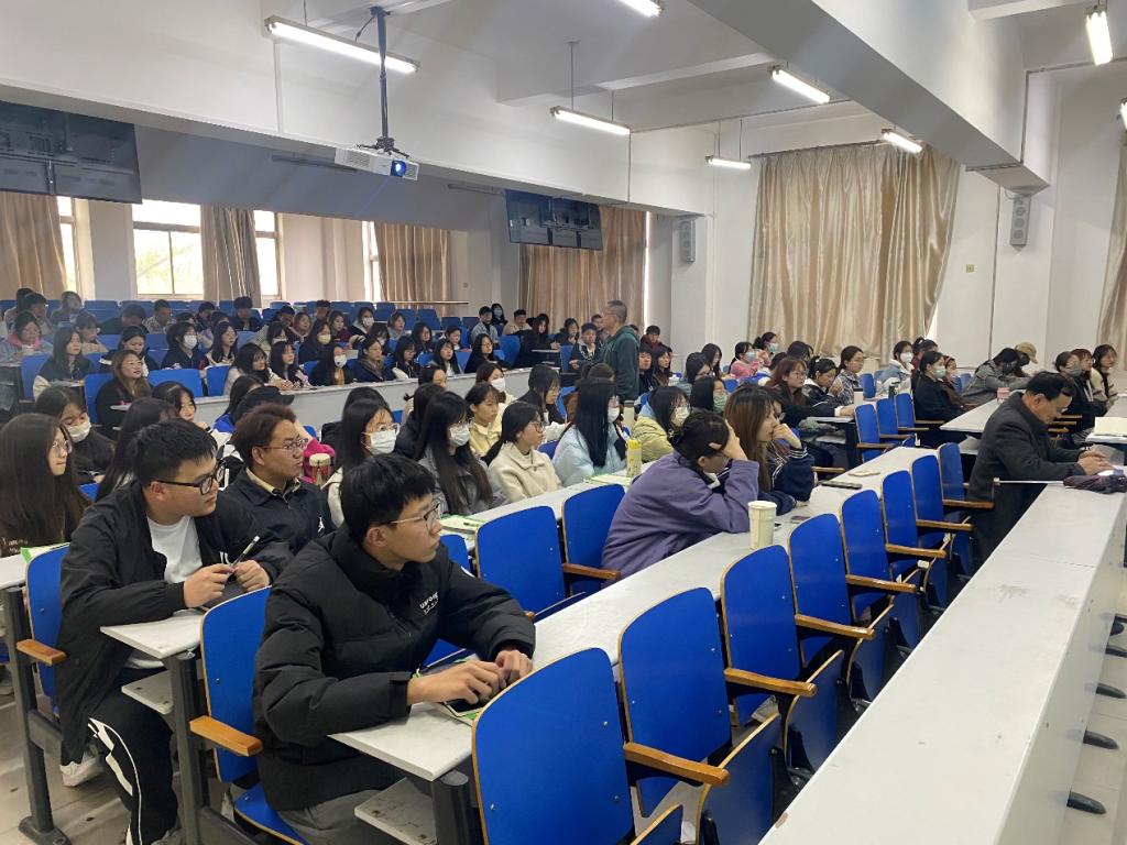 在英国上市公司365百年华诞之际,为了营造浓厚的学术氛围,加强与员工的联系沟通,4月21日下午,英国上市公司365员工王生虎应邀来公司为师生做了题为《梅花香自苦寒来--谈谈教师专业成长》的讲座。英国上市公司365部分教师、20级和22级英语专业和翻译专业部分本科生参加活动。