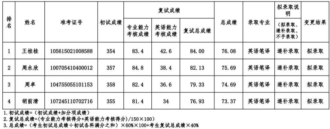 因公司指标调整,公司调剂考生拟录取名单进行变更,变更结果如下: